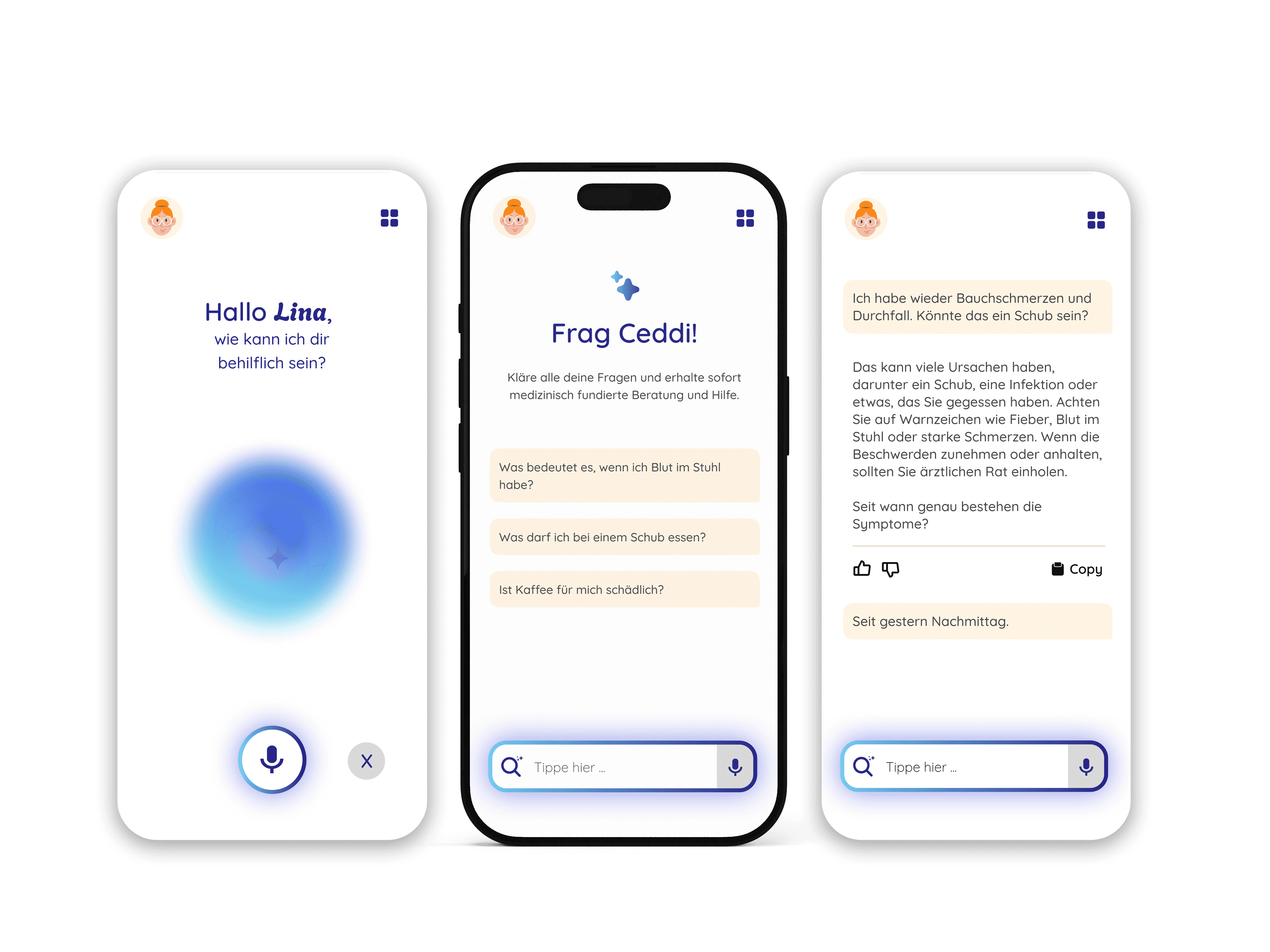 Bei Dringlichkeit wird dir von Ceddi umgehend empfohlen einen Arzt aufzusuchen. So ersetzt Ceddi keinen ärztlichen Rat, sondern dient lediglich für schnelle Fragen im Alltag eines CED-Patienten.