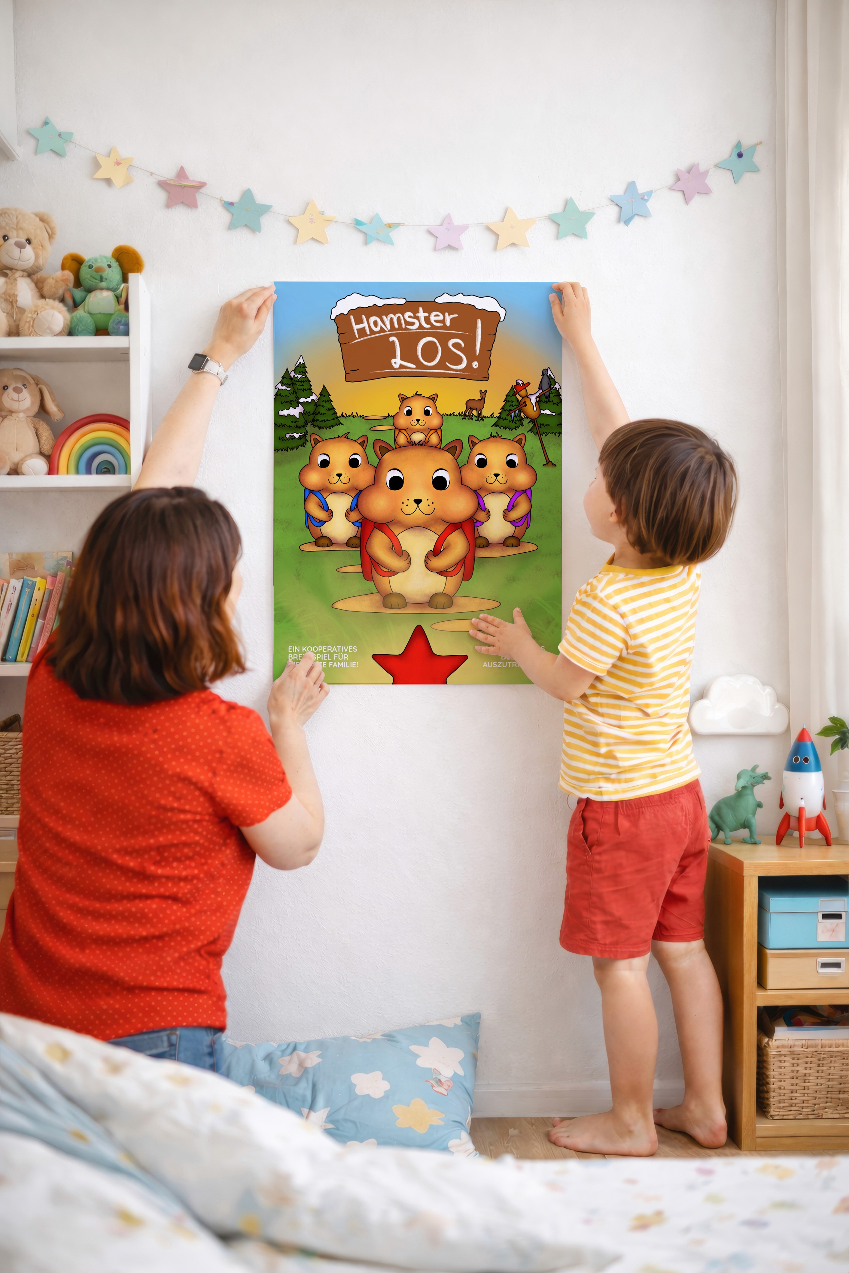 „Hamster los!“ ist ein kooperatives Spiel für 2–4 Spieler ab 4 Jahren. Gemeinsam schlüpfen die Spieler in die Rollen kleiner Hamster und sammeln Vorräte, bevor der Winter einbricht.